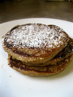 For the syrup, I like warming some maple syrup, a tablespoon or two of butter, and a shake of cinnamon. Another option is powdered sugar that has been sifted gently atop your perfect pillows of delight, landing like snow on a winter's morn. But I digress. Either one makes a perfect topping!